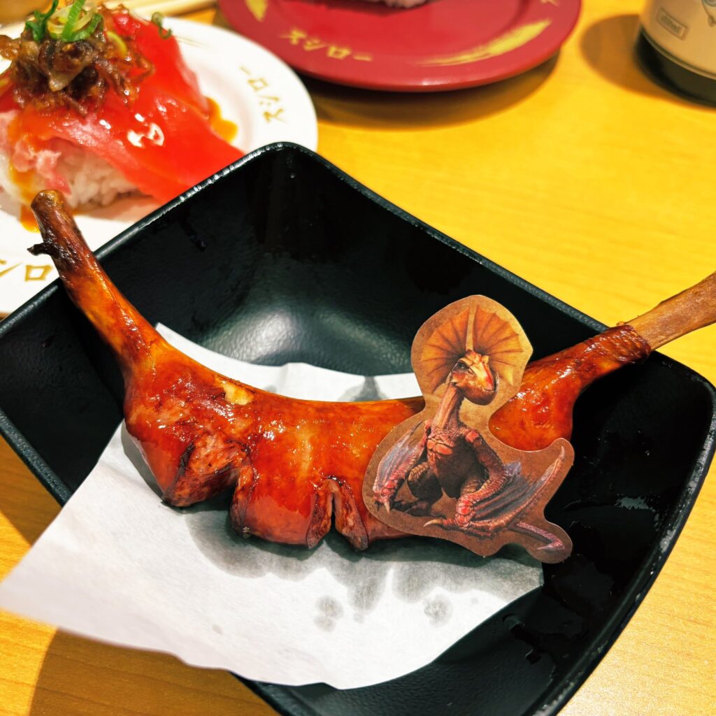 モンハン新作リリースを記念して、スシローとモンハンがコラボしているということで休みを利用して行ってきたんだけど、もうすでに回復薬風ボトル付きドリンクは全て狩り尽くされていて手に入れることができずでした…。残念。